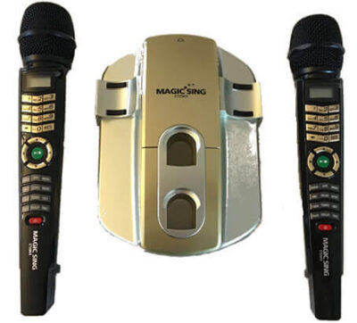 zum Anschluss an Ihre Tonanlage + Fernseher mit über 2000 Songs (deutsch, englisch) Aufnahmefunktion, Gesangsbewertung und 2 Funkmikrofonen